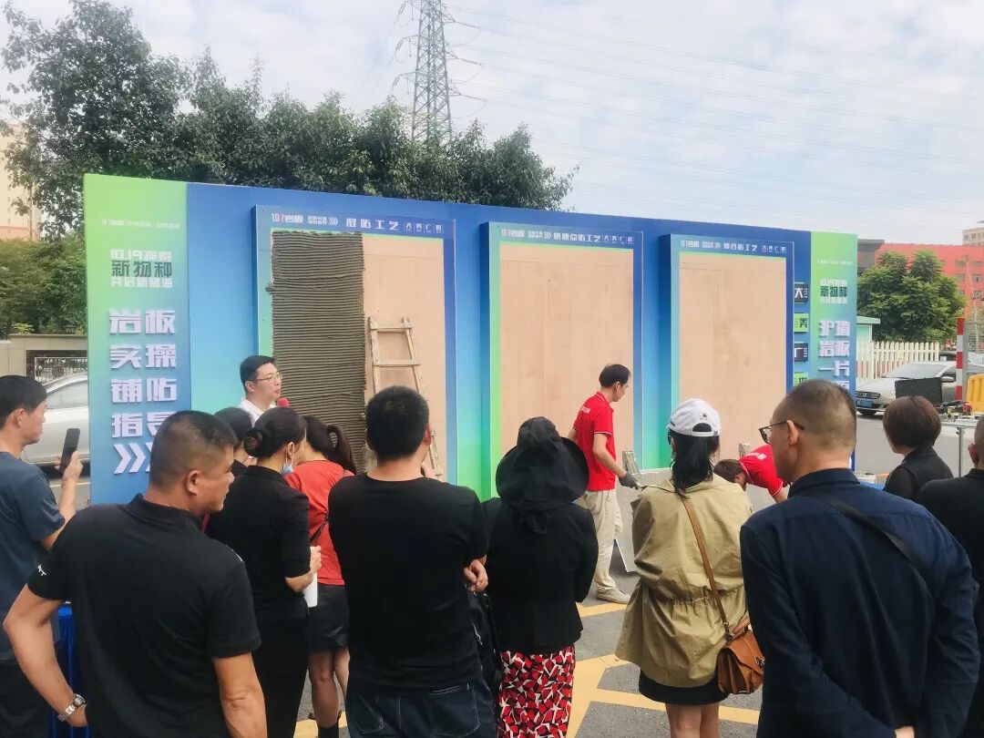 活动现场,岩板铺贴师傅进行了现场铺贴实操演示,多种铺贴方式的操作演示培训,解决了终端的岩板铺贴应用。