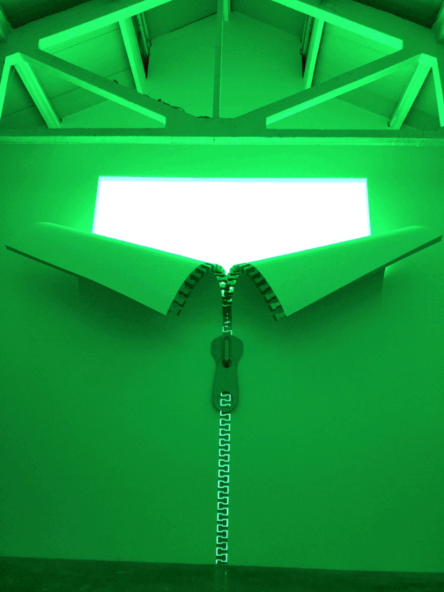 在31号工厂内汇集的众多品牌与展览中,入口处的外立面上抢眼的异形化拉链设计迅速抓住了人们视线,视觉效果十分逼真,走进工厂内,墙面上的拉链设计随着灯光色彩的变化也演绎出不同的风格。