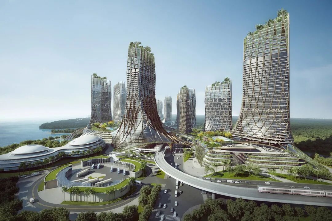 1、碧桂园•森林城市,地处马来西亚与新加坡的交界,河流出海口处。