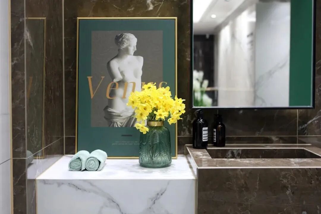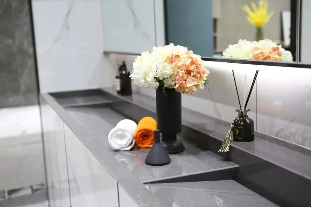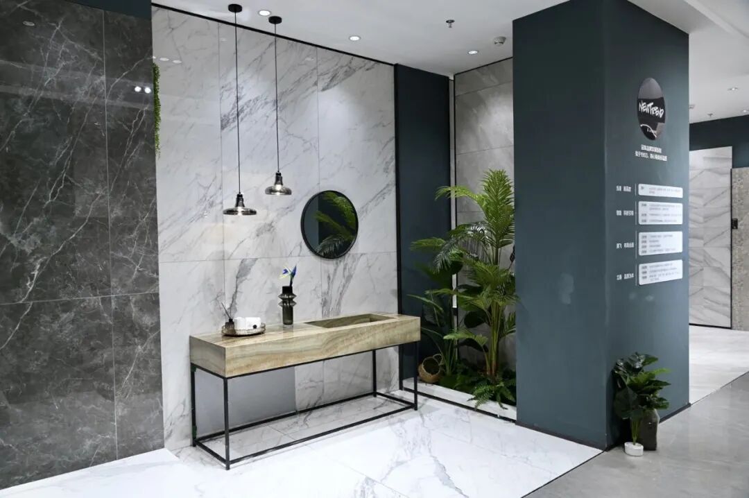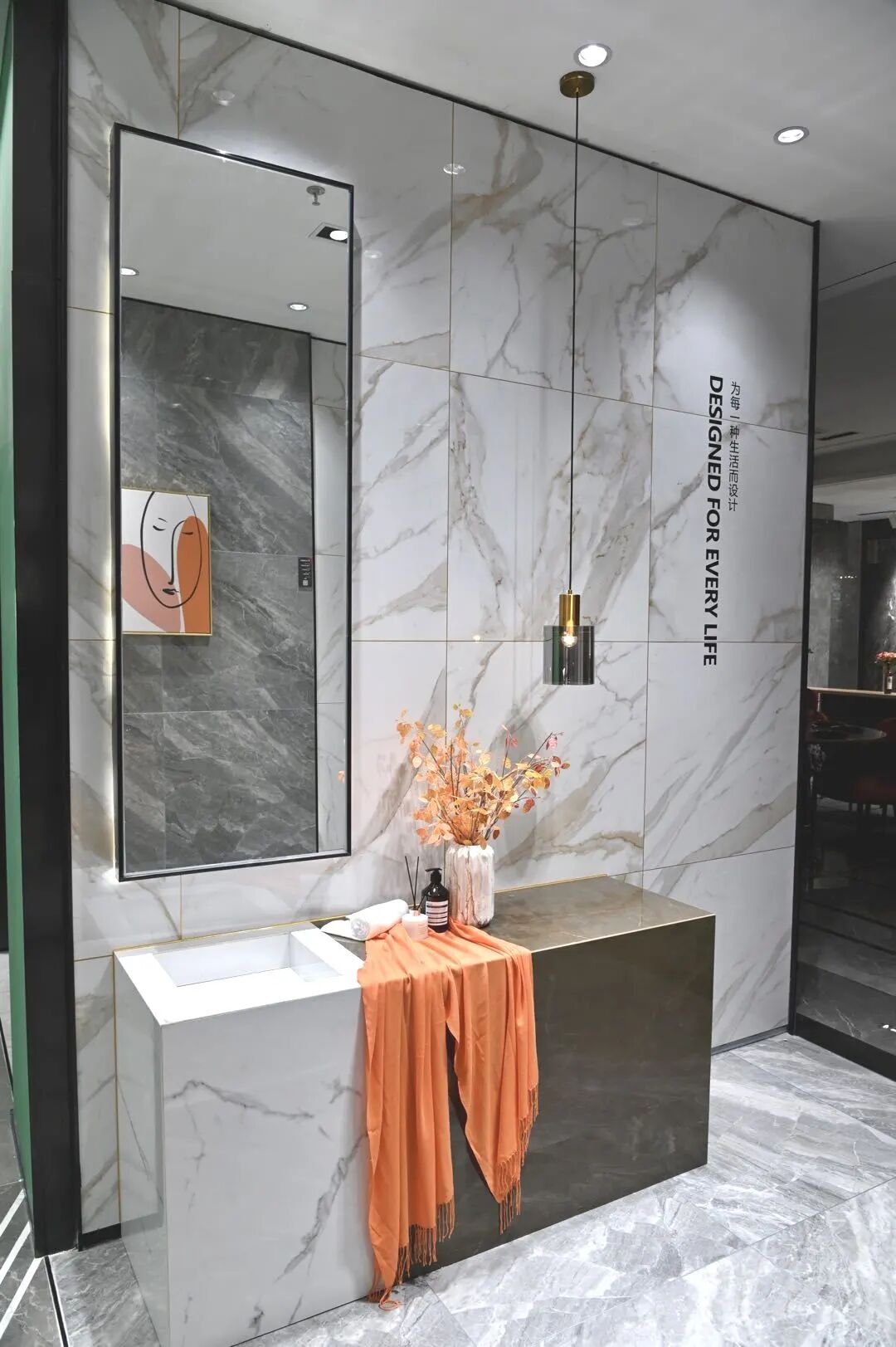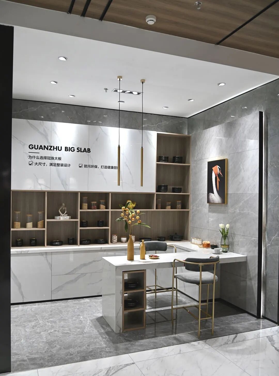 新型产品:冠珠岩板、石墨烯智控发热瓷砖、清新系列、防滑系列等等,在墙地面、背景墙、台面、橱柜、卫生间洗手台等多元整装空间应用中,赋予设计师以众多新的灵感。