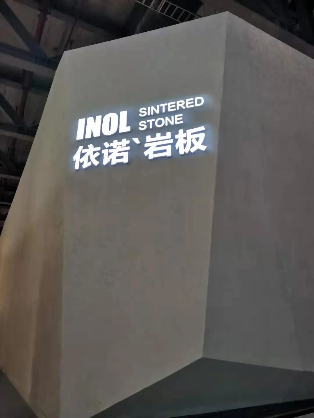 依诺岩板以“快闪美术馆”登陆广州设计周,主推“一片到顶”规格岩板产品,还带来了“全案落地”岩板产品,在5个不同的功能分区里,都陈列有适配的岩板家居应用,包括背景墙、餐桌、茶几、茶台、储物柜、橱柜、岛台、吧台、床背、床头柜、衣柜、洗手盆、洽谈桌台面、vip区凳面、墙身、地面等家居定制。