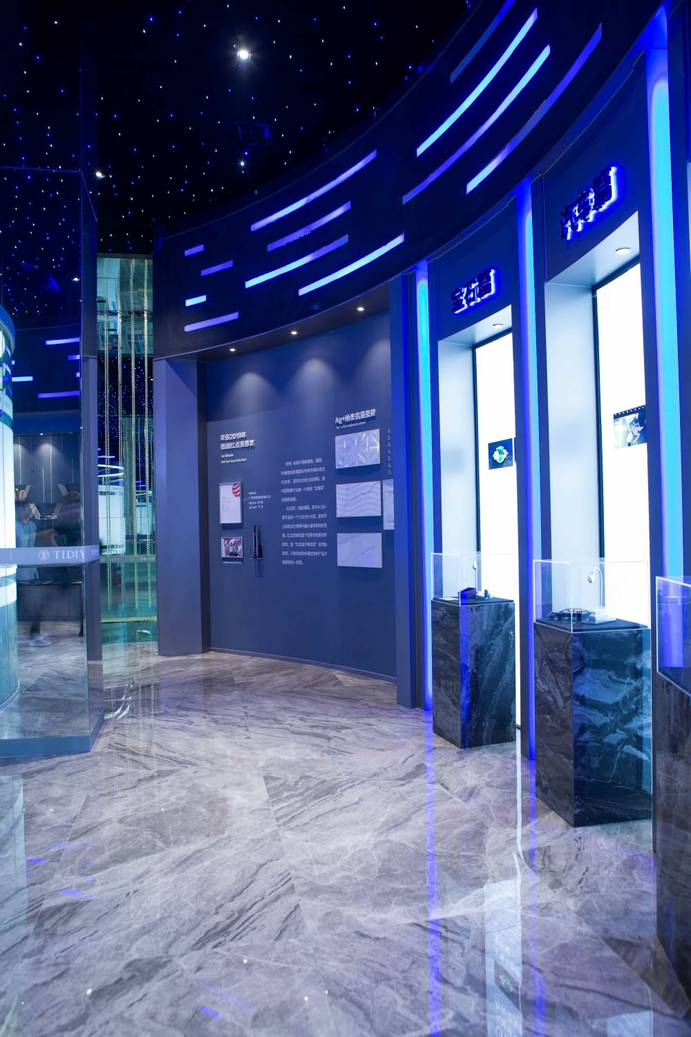除此之外,为了匹配负离子瓷砖产品,特地将总部和终端的展厅都打造成负离子科技馆,分别设置做实验的区域,如检测仪对比实验、甲醛实验、豆芽实验、烟雾灯实验等专区,可以为来访者进行实验,演示负离子的诞生过程和优点,展示特地在负离子瓷砖上的专业性。