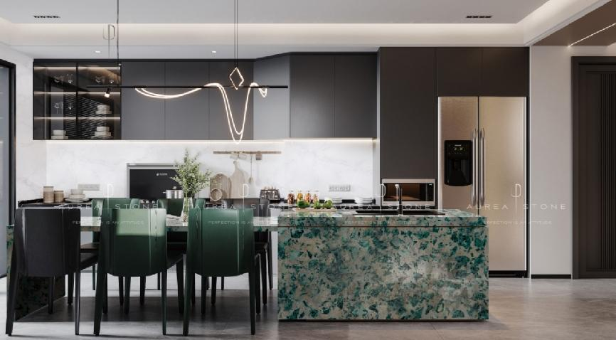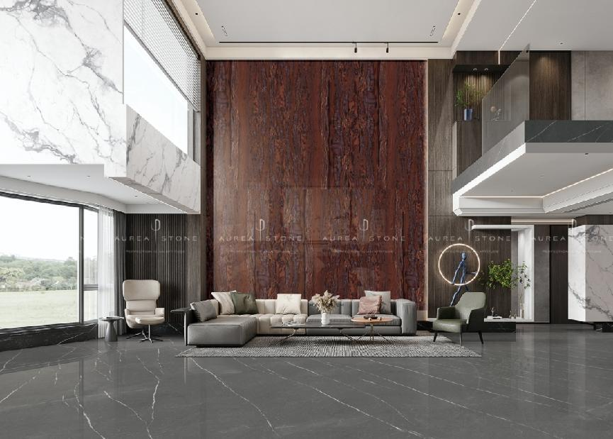 行业中有“万物皆可精工奢石”的说法,精工奢石被广泛应用于建筑空间中,如墙面、地面、台面、门柜、桌几成品等。