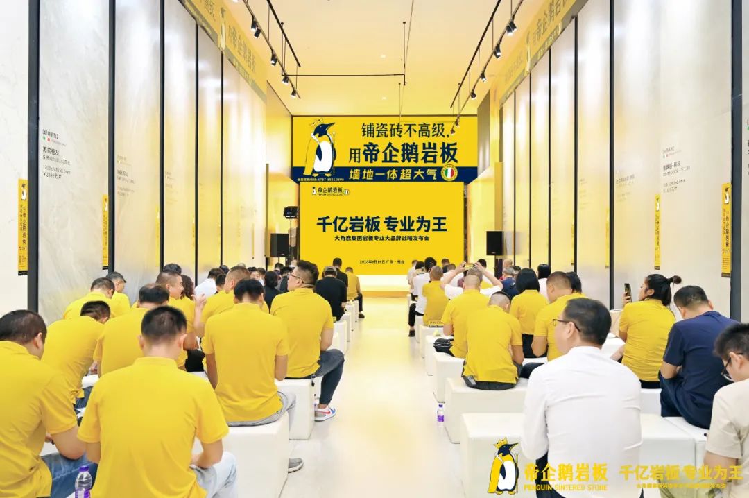 千亿岩板,专业为王!9月16日,大角鹿集团在佛山总部隆重推出岩板专业大品牌帝企鹅岩板,宣布推出全新岩板品牌“帝企鹅”,以专业化为导向,剑指千亿岩板市场。新浪家居、搜狐家居、腾讯家居、广东电视台、陶城报、中国陶瓷网、陶瓷信息、陶瓷资讯、华夏陶瓷网等50多家全国主流媒体与行业媒体出席并报道了新品牌战略发布会,135万+全球建材家居人通过线上直播观看了盛况。