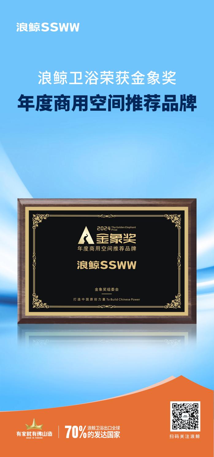 2024年5月14日-5月17日,第28届上海国际厨卫设施展盛大启幕,浪鲸卫浴2024年新品发布会“水洗科技 康养生活”在浪鲸展馆(展位号E1D03)同步隆重召开。在这次展会中,浪鲸凭借其重磅推出的创新研发成果“水洗科技”以及在康养生活领域的全面升级,成功斩获《金象奖-2024年度水洗科技领军品牌》与《金象奖-2024年度商用空间推荐品牌》两项大奖。这不仅是行业对浪鲸卫浴技术实力的认可,更是对其康养生活理念在商业空间解决方案中所做贡献的肯定。