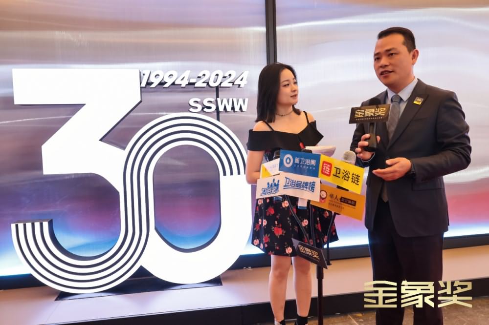 5月14日下午,金象奖组委会一行亲临浪鲸卫浴展馆E1D03,广东省卫浴商会秘书长张书儒先生为其颁发《金象奖-2024年度水洗科技领军品牌》与《金象奖-2024年度商用空间推荐品牌》荣誉证书。新卫浴网、华南家居网、华人家居设计师网、卫浴链等媒体团共同报道了这一荣耀时刻。
