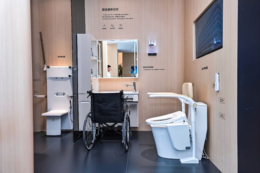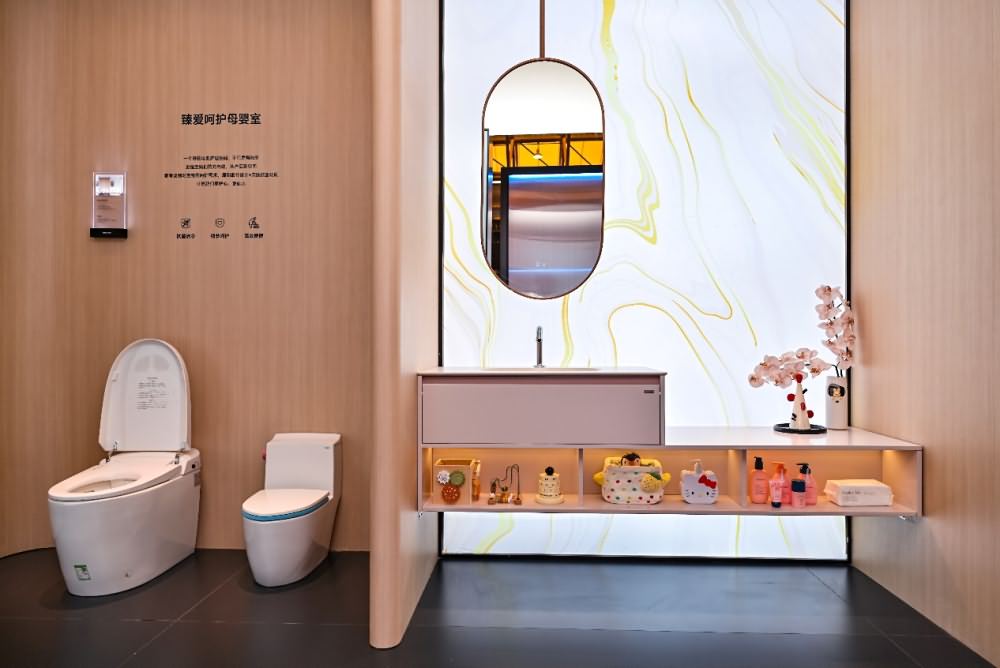 除了在水洗科技上的创新外,浪鲸卫浴还从商用空间的角度出发,带来公 共 + 母 婴 + 康 养三大公共空间解决方案,其设计的商用卫浴空间不仅注重美观与实用性,更充分考虑了商业场所的特殊需求,如人流量大、使用频率高等问题。