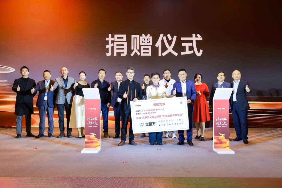 爱心无界,科技向善,AI赋能公益,让爱心更有力量。金意陶始终将社会责任置于心头,持续为公益事业注入温度与力量。金意陶集团副总经理兼财务中心总经理朱炜煜与高原美朵工艺项目理事长胡毅在双方嘉宾以及全体金意陶人的见证下正式举行签约捐赠仪式,启动“AI赋能包虫病防治”公益行动合作计划,通过人工智能技术与医疗资源相结合,助力西部高原地区疾病防治,让前沿科技化作守护生命健康的坚实屏障。