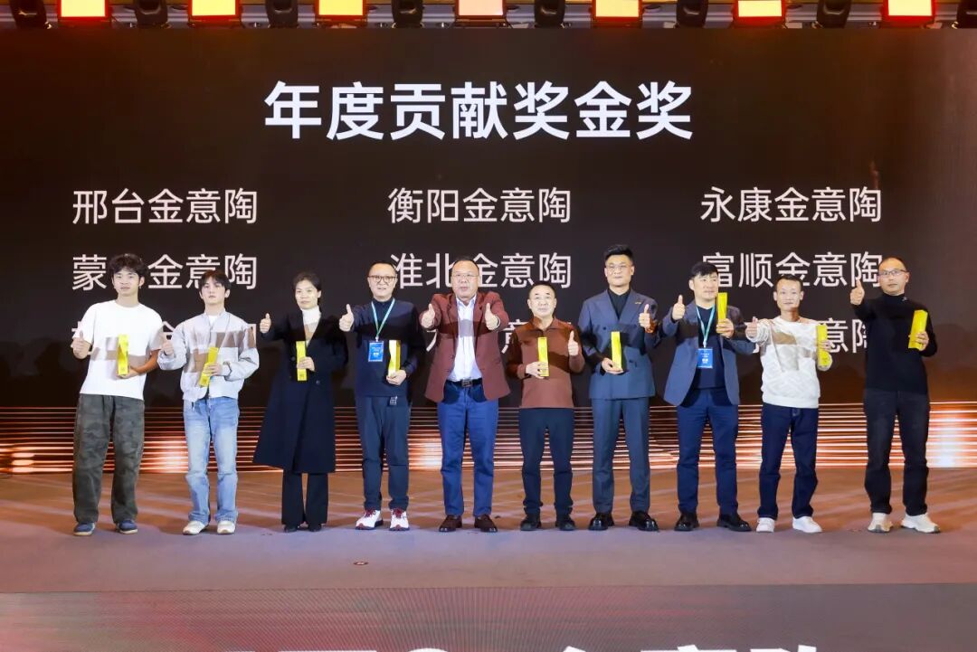 在英雄夜宴上,金意陶借此机会举行隆重的颁奖盛典,为2025年在每一领域的优秀标杆经销商授予荣誉,在沉甸甸的奖杯背后,是金意陶人的实力展现,是2025年的收获与总结,亦是推动着金意陶人向更高的目标前行,2026固本强基,店效倍增,我们活的好、活的久。