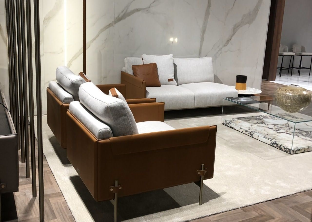 皮质和布艺材料在家具中得到了大量的运用,配上时尚色系,为整个生活空间增添了温暖和品质感。